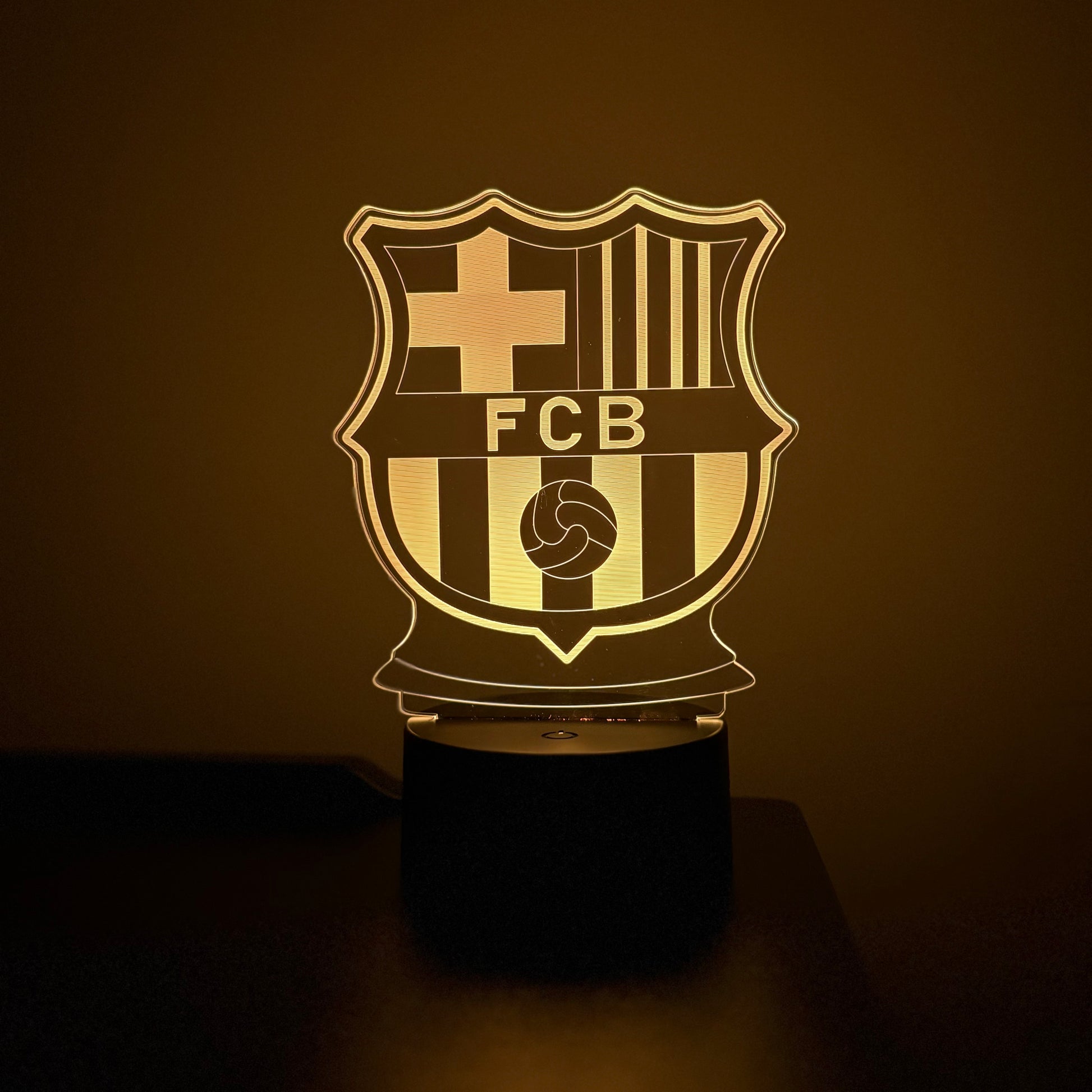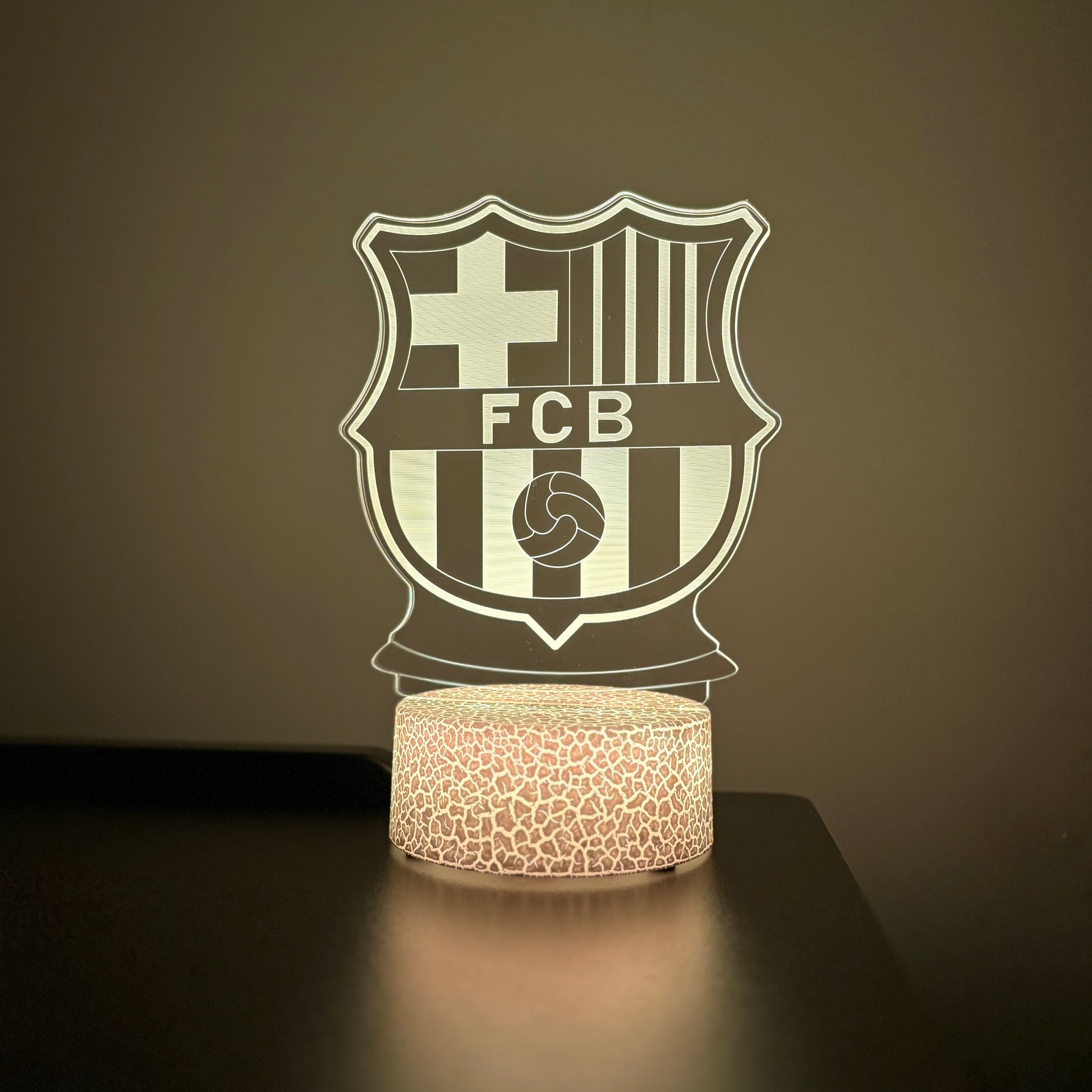 Light up your space with a clean, modern Barcelona LED desk lamp, laser‑etched in crystal‑clear acrylic and styled to complement the club’s signature red. Perfect for desks, shelves, gaming setups, or gift‑giving.