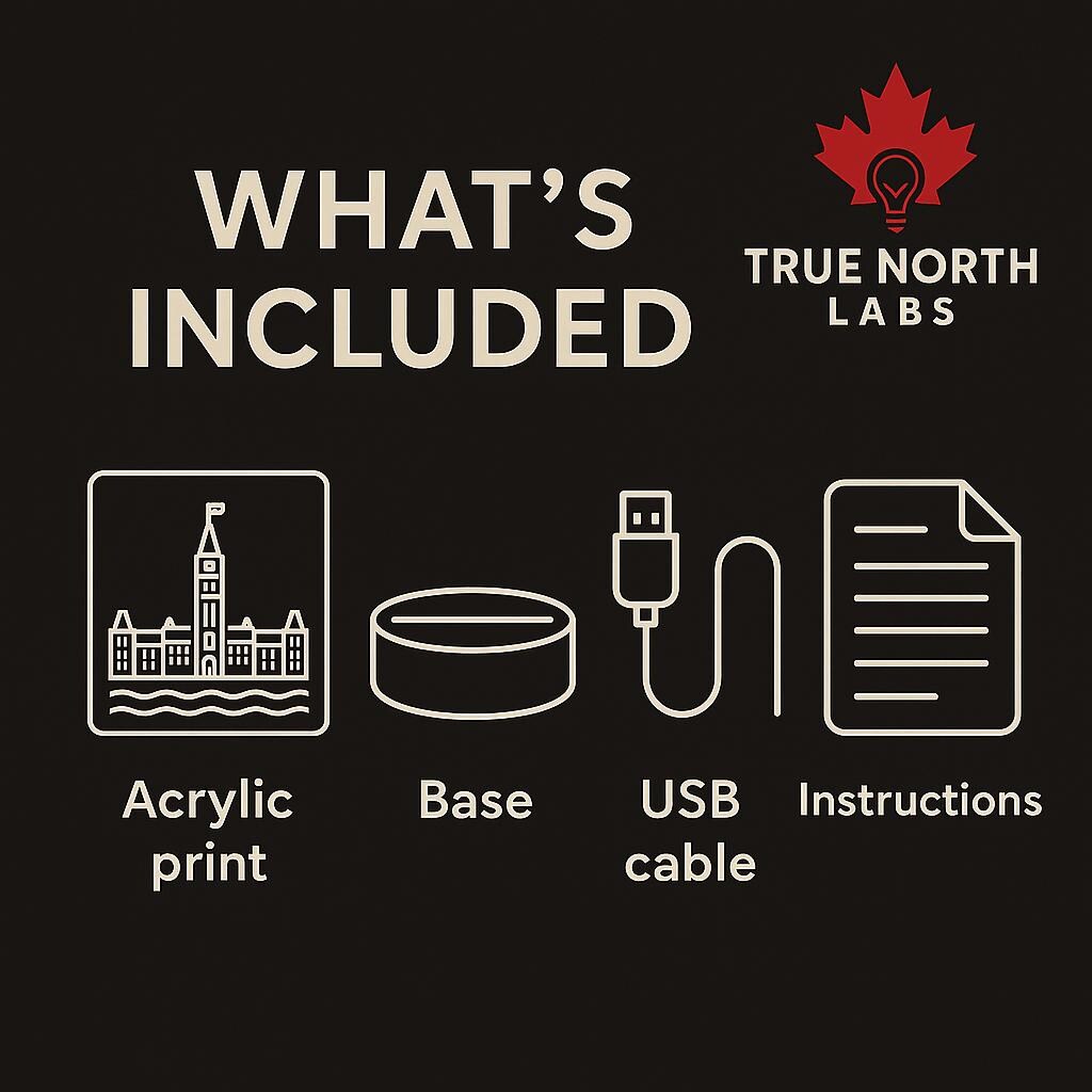 Bring the Ottawa skyline to your space with a sleek acrylic plate set on a premium wooden LED base. This cityscape lamp adds a minimalist glow to desks, shelves, and nightstands.